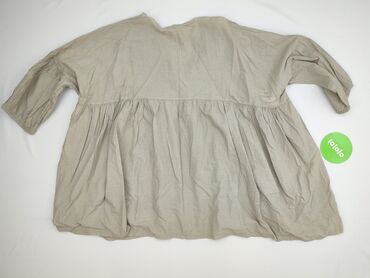 Sukienka damska z krótkim rękawem, beżowa, rozmiar L. - Fason: luźna góra z kimono/dolman rękawem, talia podkreślona szeroką gumką, rozkloszowany dół do ok. połowy uda. - Dekolt: w kształcie liter...