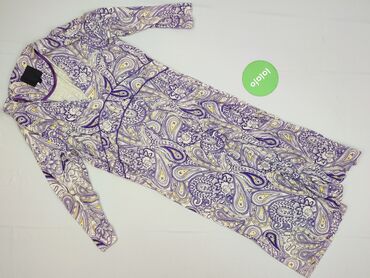 Sukienka damska we wzór paisley, utrzymana w odcieniach szarości i fioletu. Posiada kopertowy fason z wiązaniem w talii, co pozwala na dopasowanie do sylwetki. Dekolt w kształcie litery V i ramiącz...