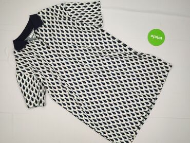 Sukienka damska Reserved, rozmiar 38 - Krój: prosta, lekko dopasowana, długość mini/przed kolano - Dekolt: ozdobny w kształcie litery U z czarną, szeroką lamówką - Rękawy: krótkie - Wzór: poziome ...