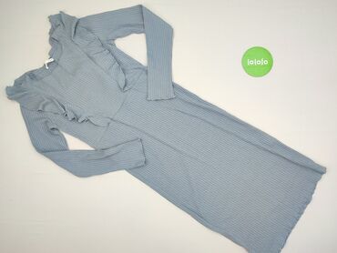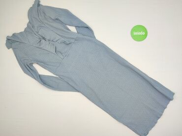 Niebieska sukienka midi Sinsay z krótkim rękawem, idealna na wiele okazji. Wykonana z materiału o prążkowanej fakturze, zapewnia wygodę noszenia. Okrągły dekolt dodaje klasycznego wyglądu, a dopaso...
