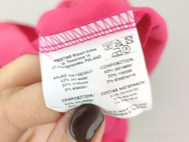 Sukienka damska – intensywny róż/fuksja - Krój: prosta, lekko rozszerzana ku dołowi; krótkie rękawy, okrągły dekolt. - Tył: rozcięcie zapinane na guzik. - Materiał: elastyczna dzianina o tłoczonej...