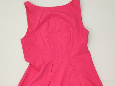 Sukienka damska, rozmiar M - Krój: prosty, długość za kolano, dekolt w serek - Rękawy: krótkie z falbanami; falbana również na dole sukienki - Wzór: złote, metaliczne kropki na pudrowo‑różowym tle...