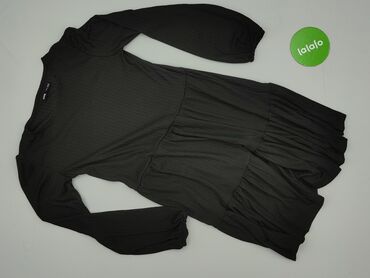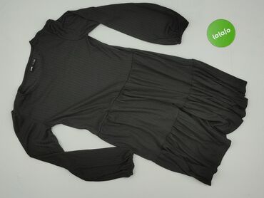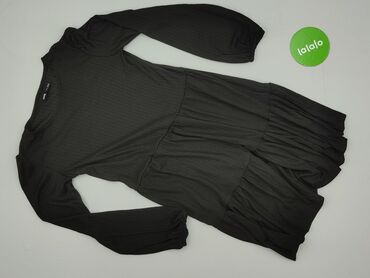 Sukienka Sinsay, rozmiar S - Kolor: czarny - Fason: rozkloszowana, z wszytymi poziomymi cięciami i marszczeniami tworzącymi falbany - Rękawy: długie, lekko bufiaste, zakończone gumką - Dekolt: okr...Stan: