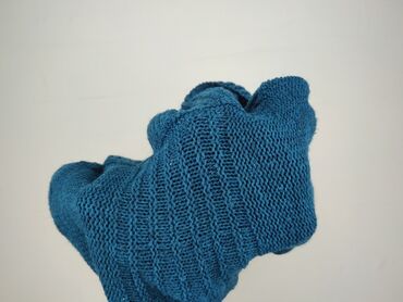 Sweter damski z golfem – niebieski melanż - Krój: dłuższy, swetrowa tunika z długim rękawem - Kołnierz: obszerny, miękki golf do wywinięcia - Splot: gruby, pionowe warkocze na przodzie, prążkowane...