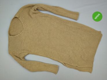 Dzianinowa sukienka swetrowa w kolorze beżowym. - Fason: dopasowany, prążkowana dzianina - Dekolt: w serek (V-neck) - Rękaw: długi - Długość: midi/przed kolano (z rozcięciami po bokach u dołu) - S...