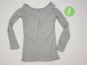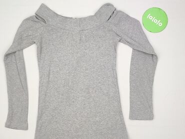 Dzianinowy top/sweter damski z prążkowanej tkaniny, kolor jasnoszary. - Krój dopasowany, elastyczny materiał prążkowany - Długi rękaw - Dekolt szeroki, asymetryczny - Ozdobne wycięcia (cut-out) z ...