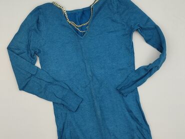 Długi rękawSwetrowa sukienka damska, niebieska