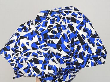 - Kolor/wzór: białe tło z geometrycznym, abstrakcyjnym nadrukiem w czerni i kobalcie; kołnierzyk w kontrastowej czerni (prążkowany ściągacz)