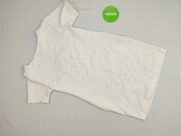 Sukienka damska dwukolorowa, rozmiar L - Fason: prosty, casualowy, z krótkim rękawem - Góra: biała, gładka, okrągły dekolt - Dół: beżowy, ołówkowy/lekko rozszerzany - Detal: falbanka na łączeniu g...