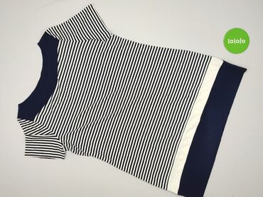Sukienka dzianinowa w paski – granat/biel - Krój: prosty, luźny T‑shirt dress z krótkim rękawem typu kimono - Długość: do kolan lub za kolano (w zależności od wzrostu) - Dekolt: okrągły, obszyty g...