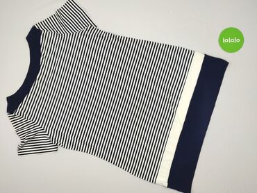Damska tunika o fasonie sukienki, charakteryzująca się poziomymi, granatowo-białymi paskami. Posiada długie rękawy i okrągły dekolt z ozdobnym, złotym zamkiem błyskawicznym. Wykonana z mieszanki po...