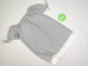 Bluzka damska tie-dye - Kolor: niebiesko‑biały, wzór tie-dye w poziome pasy - Krój: luźny, lekko skrócona długość - Rękawy: bufiaste, do łokcia, z doszytym mankietem - Dekolt: okrągły - Detal: dek...