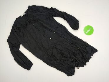 Czarna sukienka/tunika z długim rękawem - Klasyczny, prosty krój lekko rozszerzany ku dołowi - Okrągły dekolt - Miękki, elastyczny dzianinowy materiał (prawdopodobnie bawełna z domieszką elastanu)...