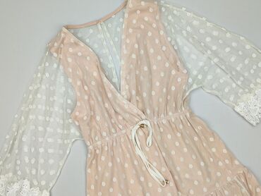 Sukienka damska na ramiączkach w grochy - Kolor: pudrowy róż z białymi kropkami - Krój: kopertowy/przekładany u góry, rozkloszowany dół z falbaną - Ramiączka cienkie, regulowane - Zapięcie: zamek ...