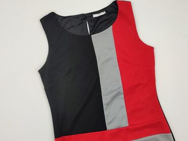 Sukienka damska w paski, rozmiar L - Fason: dopasowany, ołówkowy, długość do kolan - Wzór: kontrastowe czarno‑białe pasy ułożone pod różnymi kątami, optycznie wysmuklające sylwetkę - Rękaw: krótki...