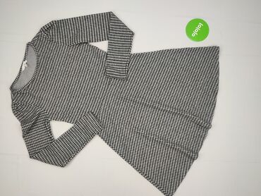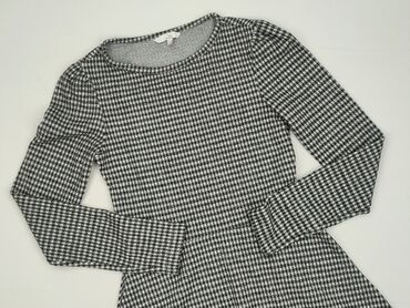 Sukienka damska House, rozmiar S - Wzór: krata (odcienie czerni, szarości i różu) - Fason: lekko rozkloszowany dół z marszczeniami/warstwami, długi rękaw - Dekolt: w serek, częściowo zapinany na g...Stan: