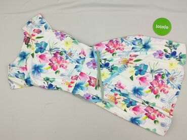 Sukienka damska ELHEMA, rozmiar z metki 50. - Fason: dopasowana do sylwetki, długość do kolan - Dekolt: szerokie ramiączka, gładka czarna góra - Wzór: kwiaty hibiskusa w odcieniach czerwieni, biel...