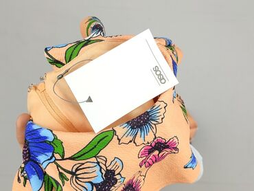 - Wzór: wyrazisty, wielobarwny print kwiatowy (niebieskie, białe i różowe kwiaty) na brzoskwiniowym tle