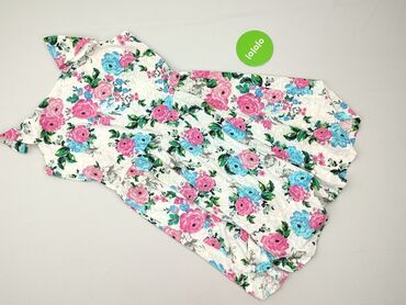 Sukienka w kwiaty, rozmiar 42 - Krój: długość midi, odcinana w talii z wiązaniem z tyłu (paski do regulacji obwodu), krótki bufiasty rękaw z marszczeniem przy mankiecie, dekolt okrągły z krótką li...