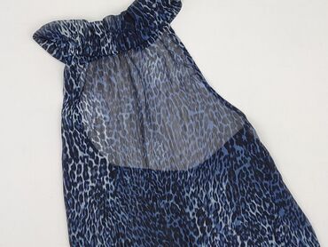 Sukienka damska bez rękawów, dwukolorowa. - Góra: kobaltowy top z kopertowym dekoltem w kształcie litery V i pionowymi zakładkami; lekko drapowana, miękko układająca się tkanina. - Talia: elastyczn...Stan: