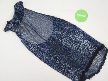 Sukienka damska bez rękawów, dzianinowa, ołówkowa/mini. - Fason: dopasowany, bez rękawów, okrągły dekolt - Długość: przed kolano (mini) - Materiał: elastyczna dzianina (przód z nadrukiem, tył gład...