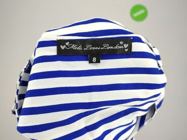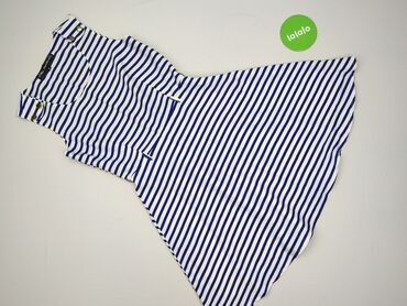 Sukienka damska w stylu marynistycznym. - Góra: bez rękawów, biało-granatowe poziome pasy. - Dół: granatowy, marszczony z kontrafałdami, długość midi; na dole wszyta listwa ściągająca nadająca „bom...Stan: