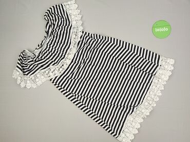 Sukienka w paski – granatowo-biała, bez rękawów - Krój: lekko rozkloszowana, długość przed kolano - Talia: elastyczna gumka podkreślająca sylwetkę - Dekolt: marszczony, na gumce - Wzór: pionowe, w...