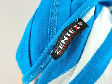 Sukienka ZENTEX – dzianinowa, w stylu marynistycznym - Fason: dopasowana, długość midi - Rękaw: długi - Dekolt: zaokrąglony - Góra: biało-niebieskie poziome pasy - Dół: gładki, intensywny kobalt -...