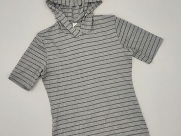 Sukienka damska w paski z kapturem - Krój: prosta, ołówkowa mini/za kolano (zależnie od wzrostu), krótkie rękawy - Dekolt: kopertowy w kształcie litery V - Dodatki: obszerny kaptur - Wzór: wąskie,...Stan: