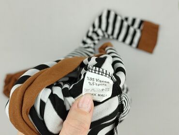Sukienka damska z kapturem, w drobne czarno‑białe paski. - Fason: prosta, lekko dopasowana, długość przed kolano (mini/średnia), krótkie rękawy - Dekolt: w kształcie litery V - Kaptur: miękki, z t...