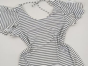 Sukienka MANGO Suit - Model: dzianinowa sukienka z dekoltem w serek - Wzór: czarno-białe, gęste, podłużne „piórka”/paseczki na całej powierzchni - Fason: prosta, lekko dopasowana, długość przed ko...