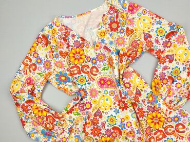 Sukienka It Hippie, rozmiar L - Fason: kopertowy dekolt V, krótkie rękawy, delikatnie zaznaczona talia, długość do kolan. - Wzór: kwiatowy, akwarelowe motywy w odcieniach niebieskiego, żółtego, sz...