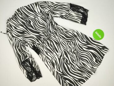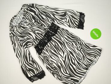 Sukienka damska z długim rękawem, z motywem zebry na górze i gładkim czarnym dołem. - Krój: dopasowana góra z zakładaną (kopertową) linią dekoltu, odcięcie w talii, spódnica o prostym kroju do kol...