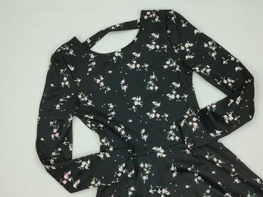Sukienka H&M Divided - Model: mini z długim rękawem - Kolor/wzór: czarne tło w kwiaty (róże w odcieniach różu, bieli i zieleni) - Fason: lekko rozkloszowany dół, dopasowana góra; okrągły dekolt z ...
