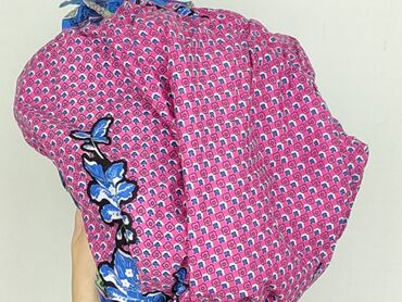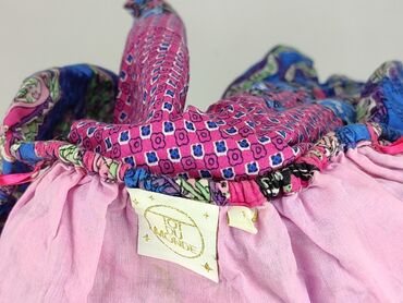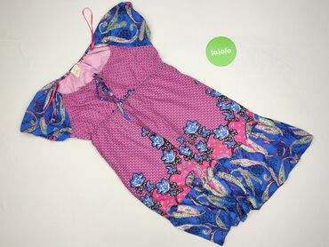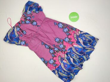 Kolorowa sukienka z nadrukiem we wzory paisley, błękitne i czarne kwiaty. Sukienka posiada dekolt z wiązaniem oraz krótkie rękawy. Dół sukienki rozszerza się, dodając swobodny charakter. Lekki materiał zapewnia komfort noszenia. Idealna na cieplejsze dni i nieformalne okazje.