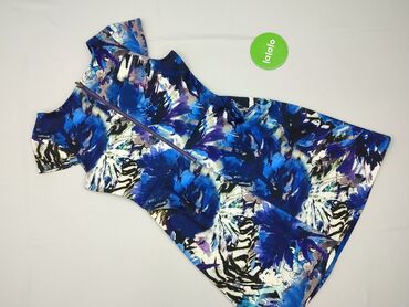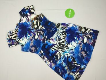 Sukienka damska w kwiaty, rozmiar L - Krój: ołówkowy, długość do kolan - Rękawy: krótkie z wycięciem na ramieniu (cold shoulder) - Dekolt: okrągły - Kolor bazowy: jasny błękit - Wzór: wielobarwne ...