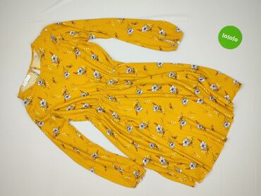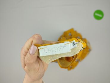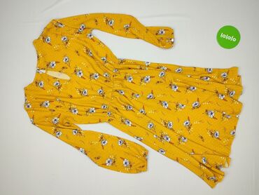 Sukienka damska w kwiaty, rozmiar XS. - Marka: na metce widoczny napis „Res.” (linia „SIZE XS”). - Kolor: pastelowy żółty z nadrukiem drobnych kwiatów w odcieniach bieli, szarości i jasnoniebieski...