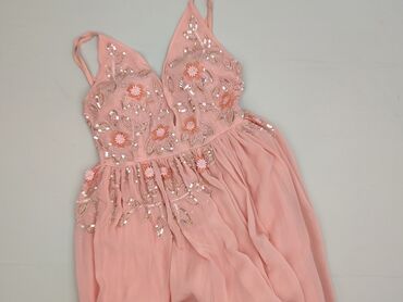 Sukienka maxi w kolorze pudrowego różu - Fason: długa, zwiewna spódnica, góra koronkowa - Dekolt: halter/wycięcie pod szyją z ozdobną aplikacją kwiatową - Detale: koronkowy gorset z drobnymi połys...