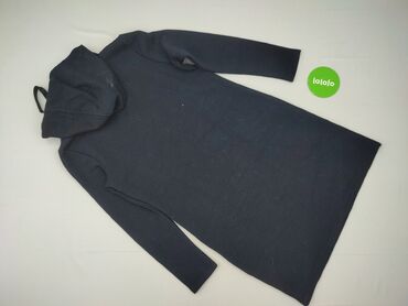 Damska tunika/bluza z kapturem – granatowa - Fason: prosta tunika z długim rękawem i obszernym kapturem - Długość: za biodra (mini/sukienkowa) - Materiał: cienka, elastyczna dzianina bawełniana z ...