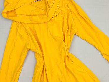 Sukienka dresowa z kapturem SOLAR – damska - Kolor: intensywna żółć (musztardowy odcień) - Fason: dzianinowa, o długości za kolano, z rozcięciami po bokach u dołu - Kaptur z czarnymi, kontrastowym...