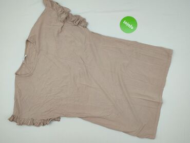 Bluzka damska z krótkim rękawem - Krój: luźny, z obniżoną linią ramion, okrągły dekolt - Kolorystyka: jasny róż z dużym, półokrągłym panelem w kolorze ciemnego brązu na przodzie - Detal: ozdobny, ...