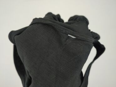 Czarna torba/siatka na ramię wykonana z miękkiej dzianiny typu T‑shirt. Model z szerokimi szelkami w kroju bokserki, bez zapięcia. Dół torby wykończony frędzlami powstałymi z węzłów – elastyczny, p...