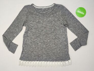 Bluzka damska z koronką, kolor jasnoszary. - Fason: luźny, z okrągłym dekoltem - Rękawy 3/4 z ażurowej koronki o kwiatowym wzorze - Przód częściowo pokryty koronką, tył gładki dzianinowy (melanż) ...