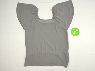 Krótki rękawSzara bluzka damska z okrągłym dekoltem. Charakteryzuje się bufiastymi rękawami, które dodają jej lekkości i zwiewności. W talii zastosowano regulowany ściągacz, który pozwala dopasować bluzkę do sylwetki, tworząc stylowe marszczenia. Bluzka jest uniwersalna i może być noszona zarówno na co dzień, jak i na bardziej formalne okazje, w zależności od stylizacji.