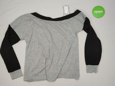 Szara bluzka damska z długim rękawem, rozmiar S (metka: everyday wear LADIESWEAR). - Melanżowa dzianina w odcieniach szarości - Okrągły dekolt wykończony czarną lamówką - Z przodu aplikacja: czarn...
