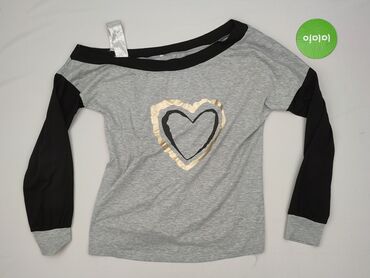 Szara damska bluzka z długim rękawem, ozdobiona trzema czarnymi sercami z przodu (na klatce piersiowej i przy ramionach). Krój prosty, lekko luźny, z okrągłym dekoltem. Rękawy 3/4. Materiał miękki,...Stan: