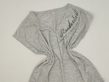 Szara damska bluzka/t-shirt z krótkim rękawem typu kimono - Kolor: jednolity szary melanż - Krój: luźny, z obniżoną linią ramion i szerokimi rękawkami; okrągły dekolt - Materiał: 95% poliester, 5%...Stan: