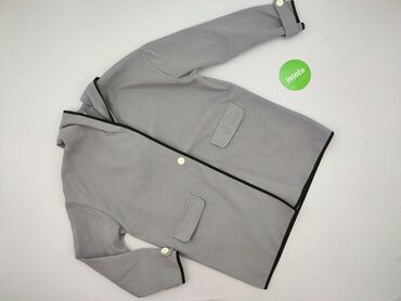 Szary żakiet/marynarka damska, rozmiar L. - Klasyczny krój z klapami w szpic - Zapinanie z przodu na 2 guziki - Dwie kieszenie z przodu typu listewka - Długi rękaw, przy mankietach po 3 dekoracyjn...