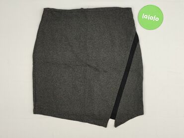 Szara spódnica mini H&M - Fason: ołówkowy, elastyczny; delikatne marszczenia po lewej stronie, lekko zawijany/przekładany dół z przodu - Kolor: szary melanż - Rozmiar z metki: M (EU) - Skład mater...