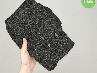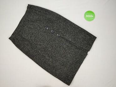 Szara spódnica damska o melanżowym wzorze, charakteryzująca się prostym krojem. Spódnica posiada ozdobne czarne guziki umieszczone z boku, które dodają jej eleganckiego wyglądu. Jest to wszechstronny element garderoby, odpowiedni do stylizacji formalnych, jak i codziennych.